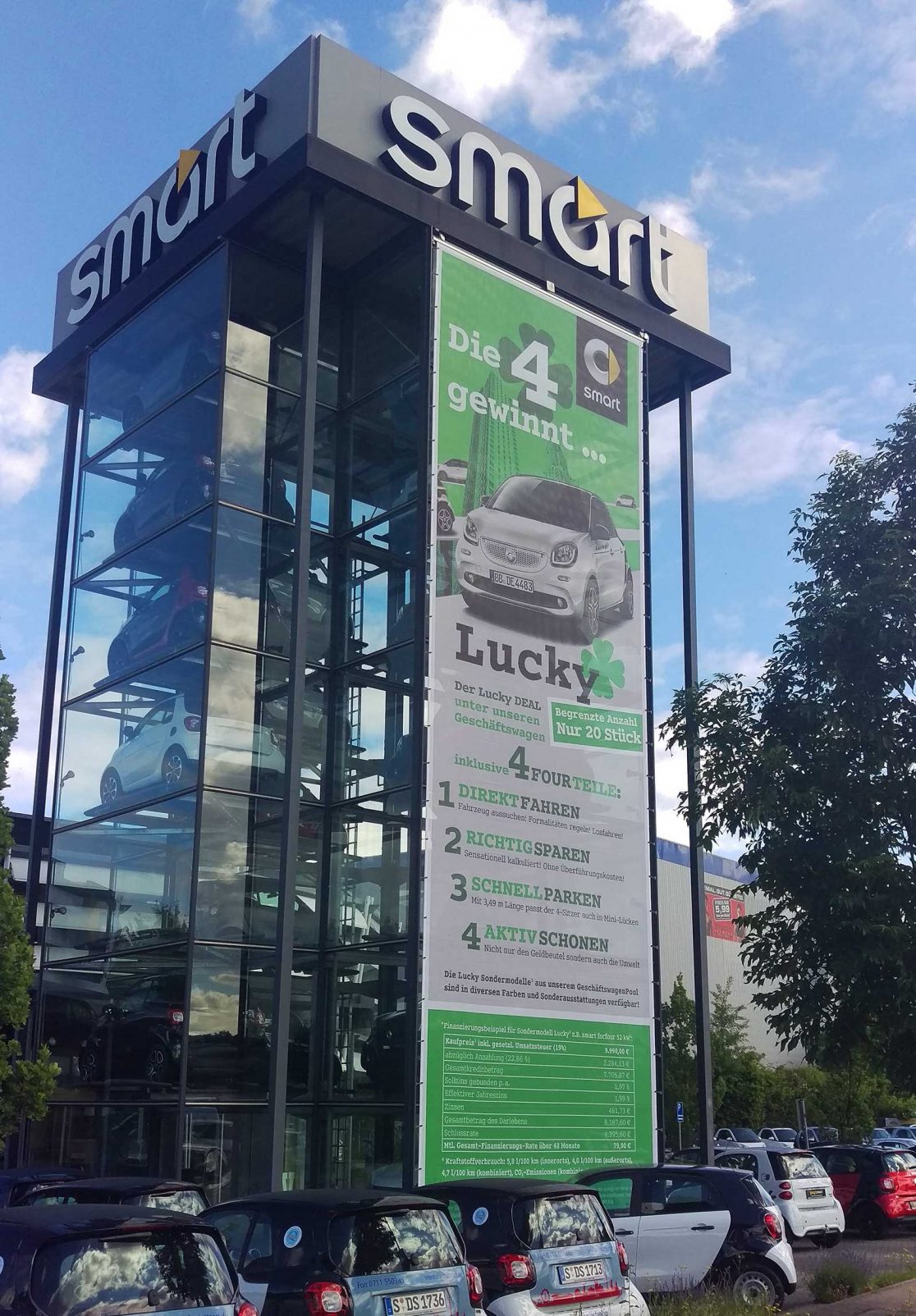 Seit mehr als 10 Jahren entwickeln und produzieren wir im Rahmen des zentralen Brandings bedarfsgerechte Vkf-Maßnahmen und POS-Aktivitäten für smart Center. Federführend ist hier das innovative smart Center Stuttgart.